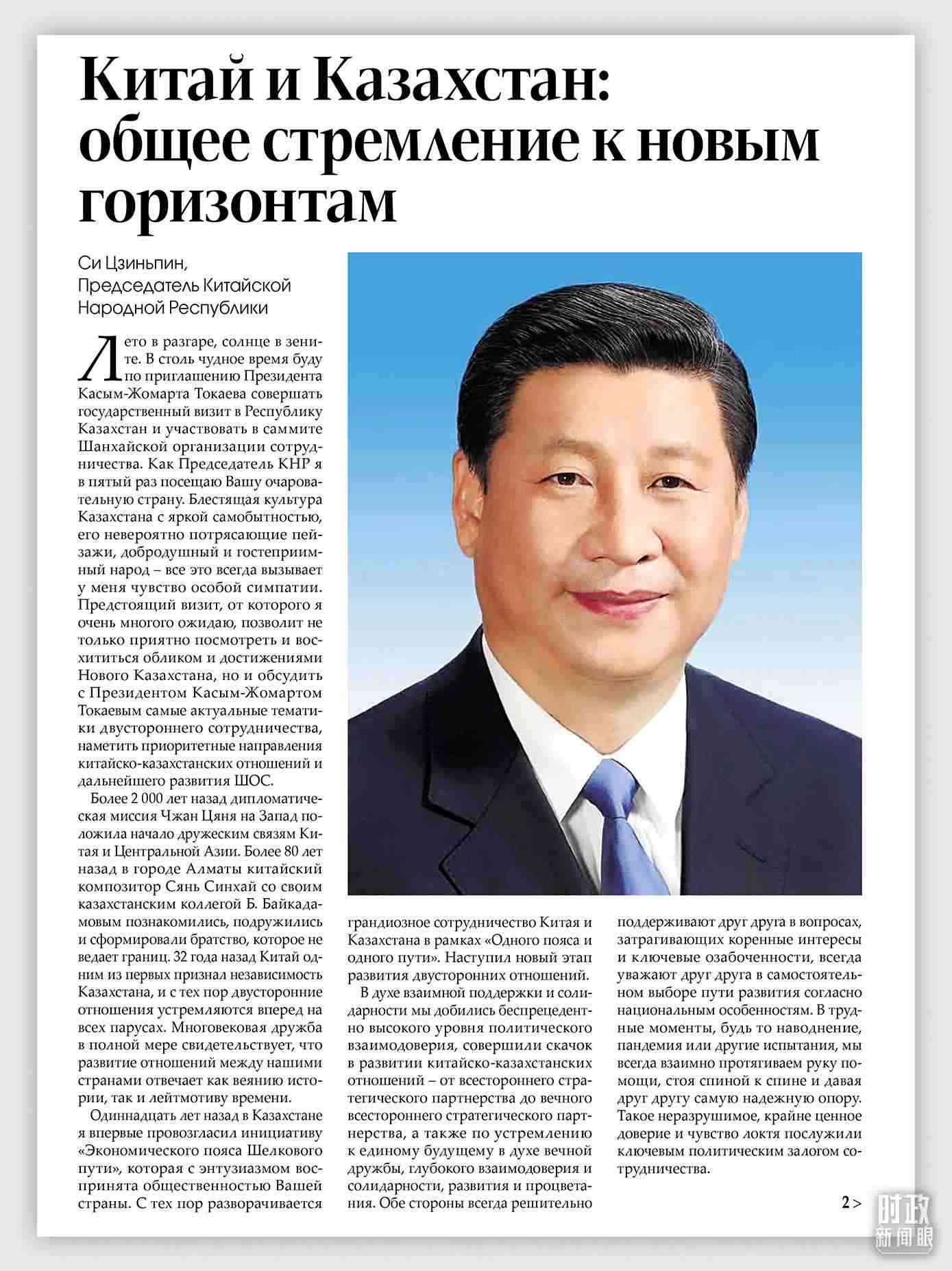 △習(xí)近平主席在《哈薩克斯坦真理報》上發(fā)表的題為《同心篤行 續(xù)寫中哈關(guān)系新篇章》的署名文章。(總臺記者張譽耀提供)