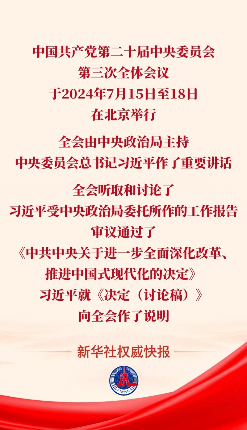 黨的二十屆三中全會(huì)審議通過(guò)《中共中央關(guān)于進(jìn)一步全面深化改革、推進(jìn)中國(guó)式現(xiàn)代化的決定》