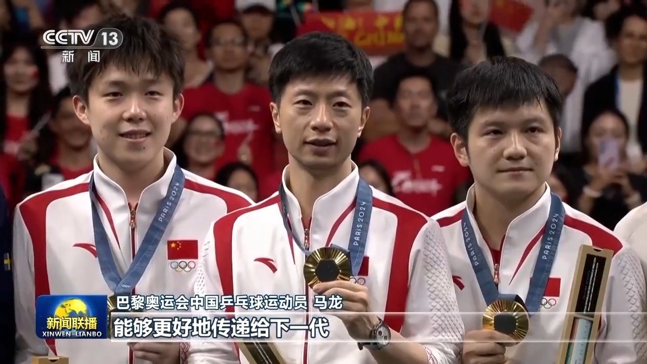 巴黎奧運會中國乒乓球運動員 馬龍:首先能夠在新中國成立75周年之際,不光是我自己拿到第六枚奧運金牌,同時能夠中國代表團(tuán)在海外也取得最好成績,我還是非常開心,也非常榮幸。作為我來說,希望能夠把自己的一些比賽經(jīng)驗以及一些對于乒乓球項目的理解,能夠更好地傳遞給下一代,然后希望他們能夠繼續(xù)為我們中國體育事業(yè)獻(xiàn)出自己的一份力量。