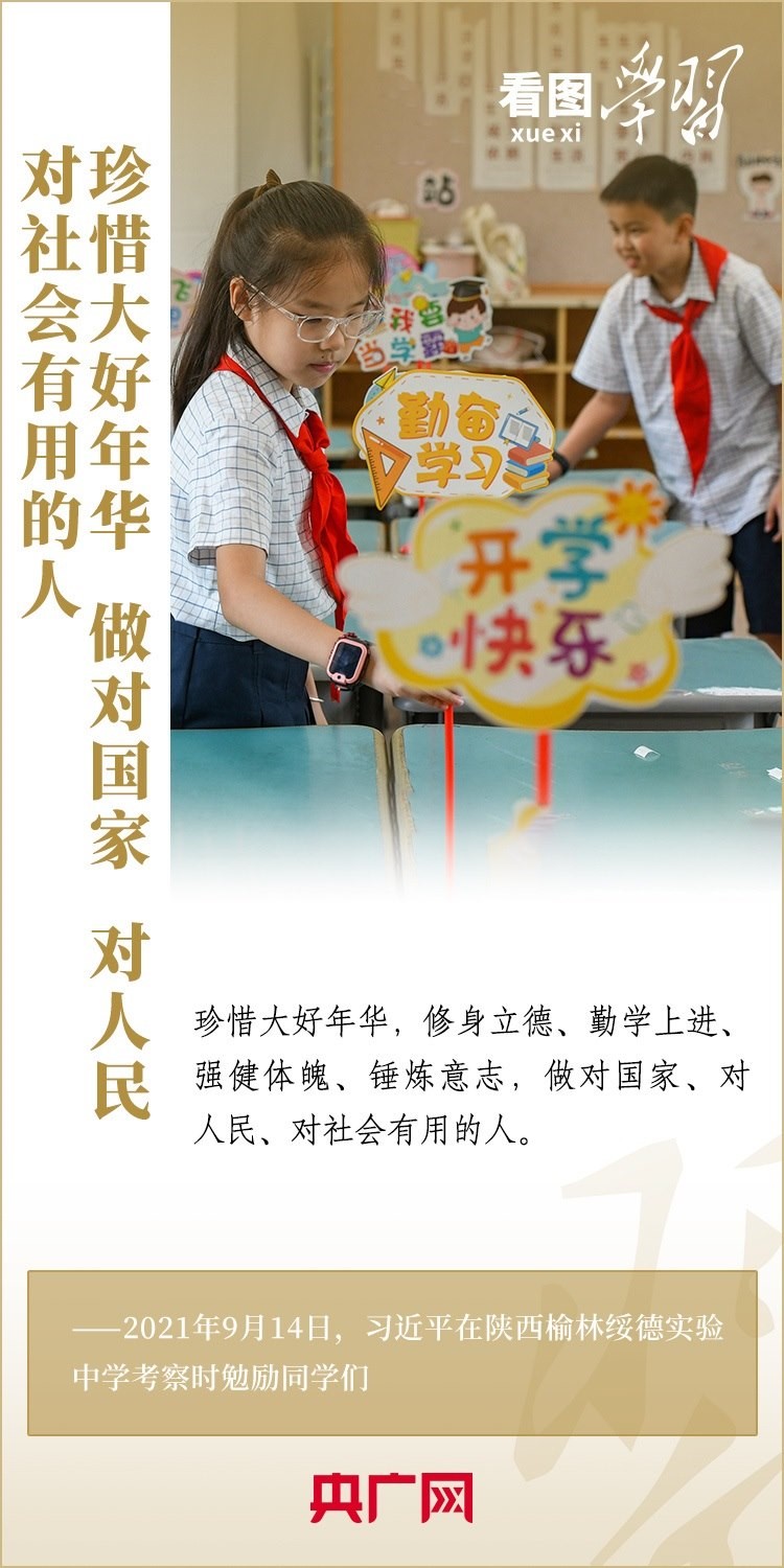 “少年兒童是祖國的未來。”一直以來,習近平總書記高度重視和關心青少年的健康成長。每每走到校園和學生們中間,總書記總會與他們談學習、談理想、談成長,鼓勵他們努力為自己贏得人生出彩的機會,做對國家、對人民、對社會有用的人。又是一年開學季,讓我們一起重溫總書記對莘莘學子的殷切期望。一起來學習!