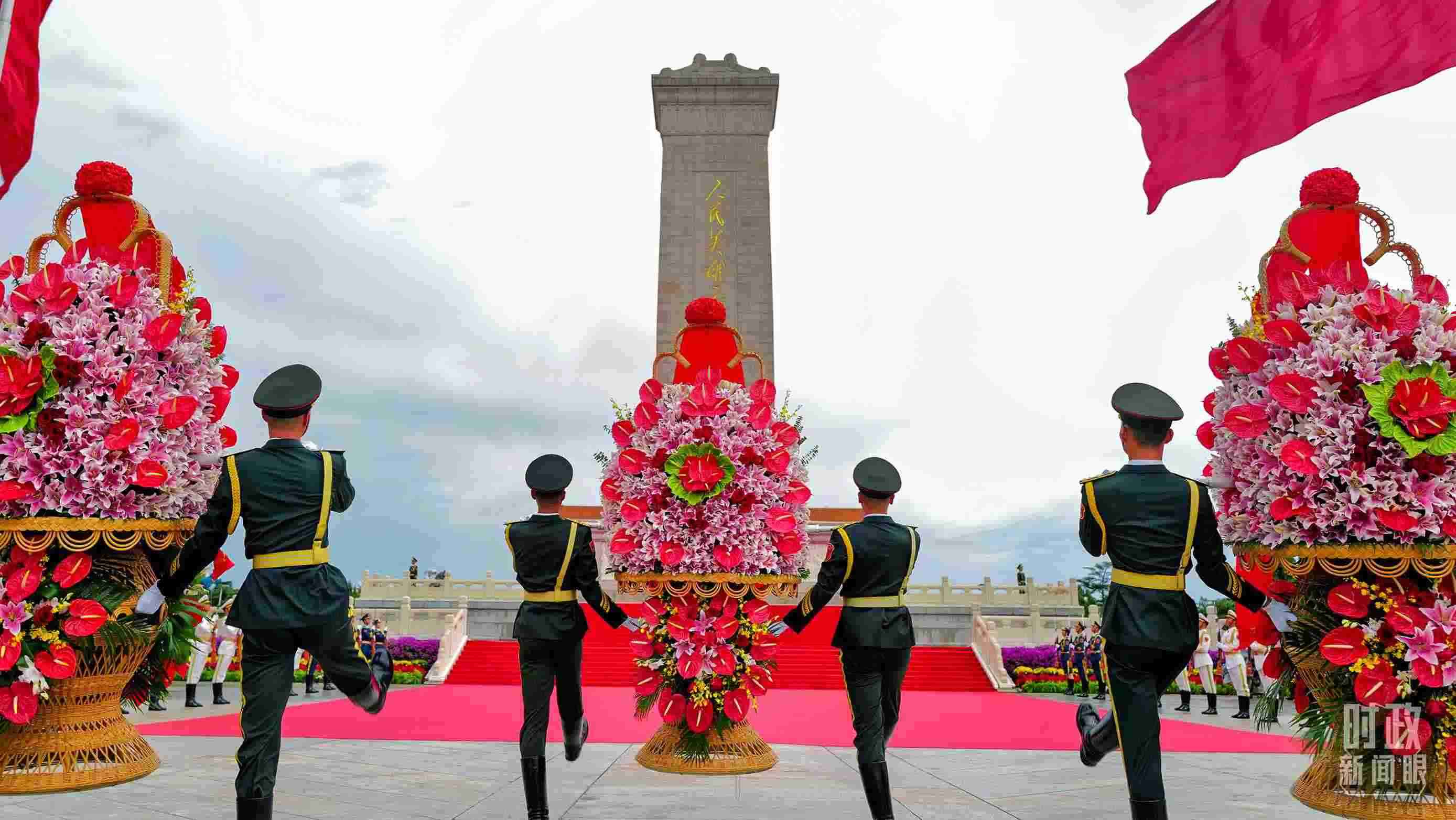 正逢新中國(guó)成立75周年,今年參加儀式的人數(shù)規(guī)模有所增加。《時(shí)政新聞眼》現(xiàn)場(chǎng)了解到,相較去年,人民英雄紀(jì)念碑基座上增加了4名禮兵。今年參加儀式的各界代表增至2400多名。