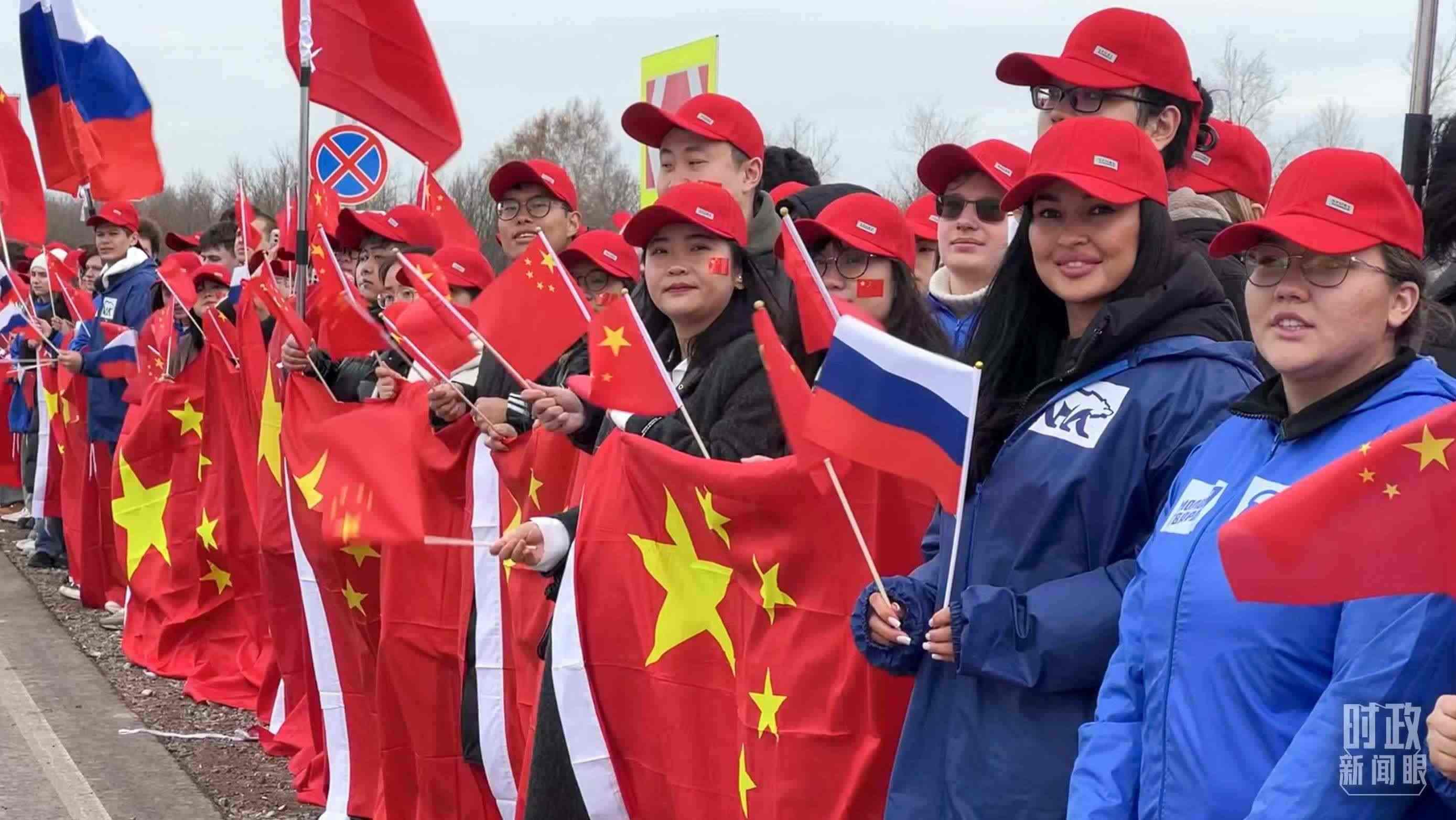 △ 俄羅斯喀山各界人士揮舞中俄兩國國旗,歡迎習(xí)主席到訪。(總臺記者蔣泓橋拍攝)