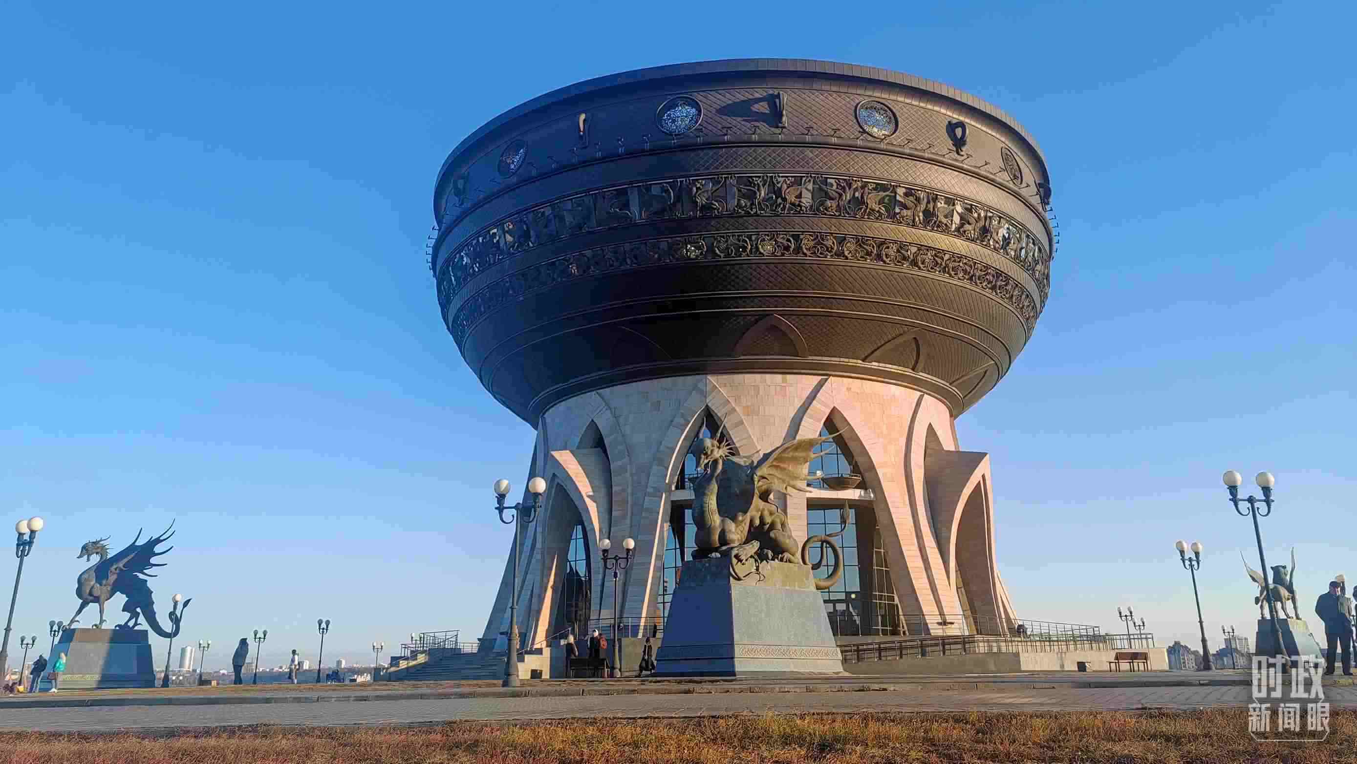 △ 大鍋形建筑——“喀山家庭中心”。(總臺央視記者王萌萌拍攝)