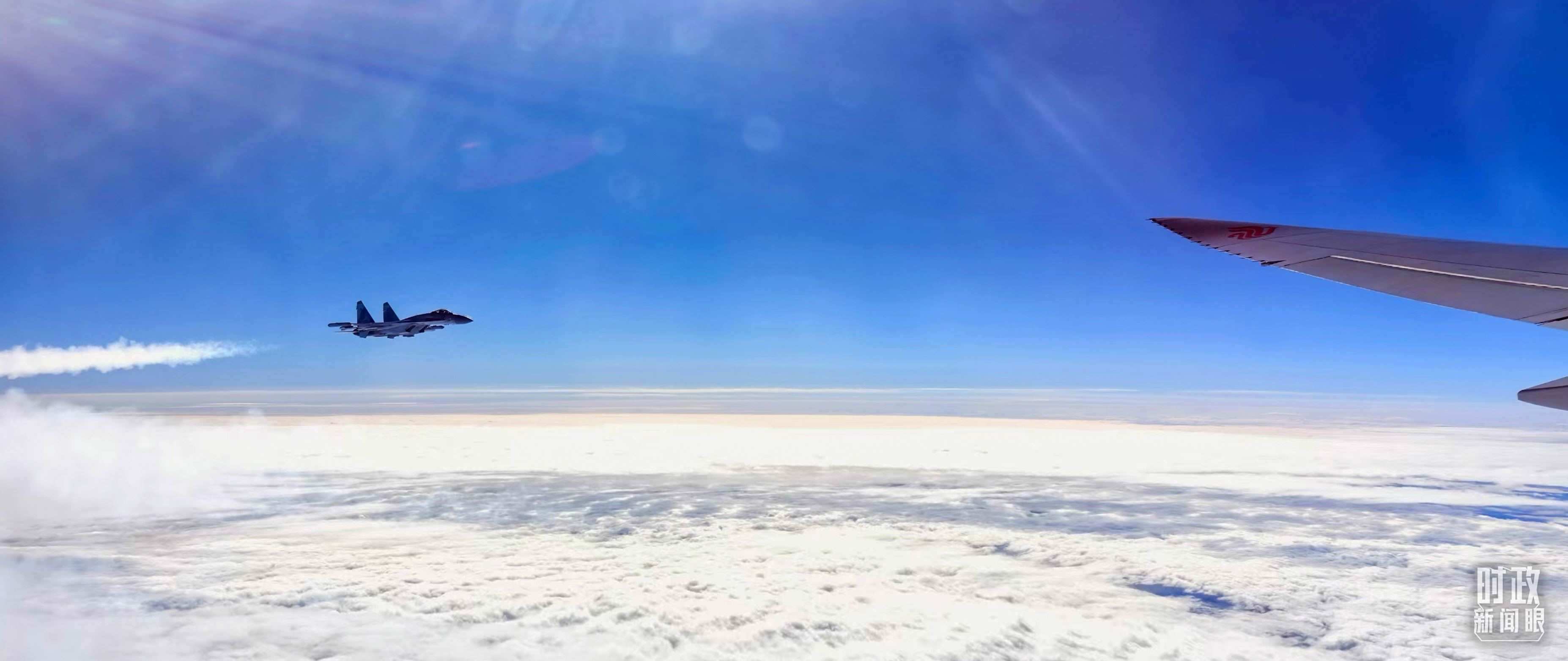 △ 習(xí)主席乘坐的專機(jī)進(jìn)入俄羅斯領(lǐng)空時,俄空軍戰(zhàn)機(jī)升空護(hù)航。(總臺央視記者李錚拍攝)
