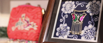 紅、綠、藍(lán)、黃……飛針走線五彩繽紛;繡、插、點(diǎn)、挑……制作手法千變?nèi)f化;龍鳳紋、魚(yú)鳥(niǎo)紋、蝴蝶紋……刺繡圖紋寓意豐富。