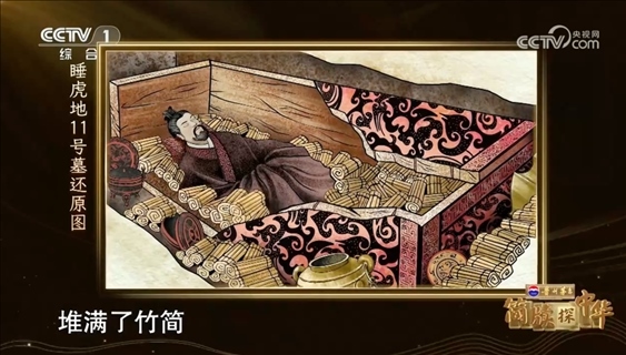 1975年底,考古學(xué)家在云夢(mèng)縣睡虎地發(fā)掘出12座戰(zhàn)國晚期至秦代的墓葬。隨著11號(hào)秦墓的開啟,人們驚奇地看見,千余片竹簡層層疊壓,有序擺放在墓主人周圍,竹簡上的字跡清晰可見,這是中國考古史上首次發(fā)現(xiàn)的秦簡。