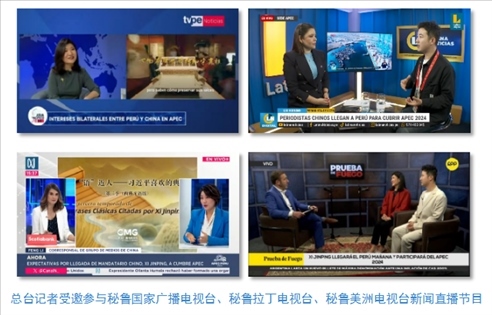 中央廣播電視總臺記者受邀參與秘魯國家廣播電視臺、秘魯拉丁電視臺和當?shù)厥找暵首罡叩拿佤斆乐揠娨暸_新聞直播節(jié)目,介紹《平“語”近人——習(xí)近平喜歡的典故》第三季(西班牙語版)內(nèi)容,帶領(lǐng)當?shù)厥鼙姼形蛄?xí)近平主席用典中蘊含的中國智慧。
