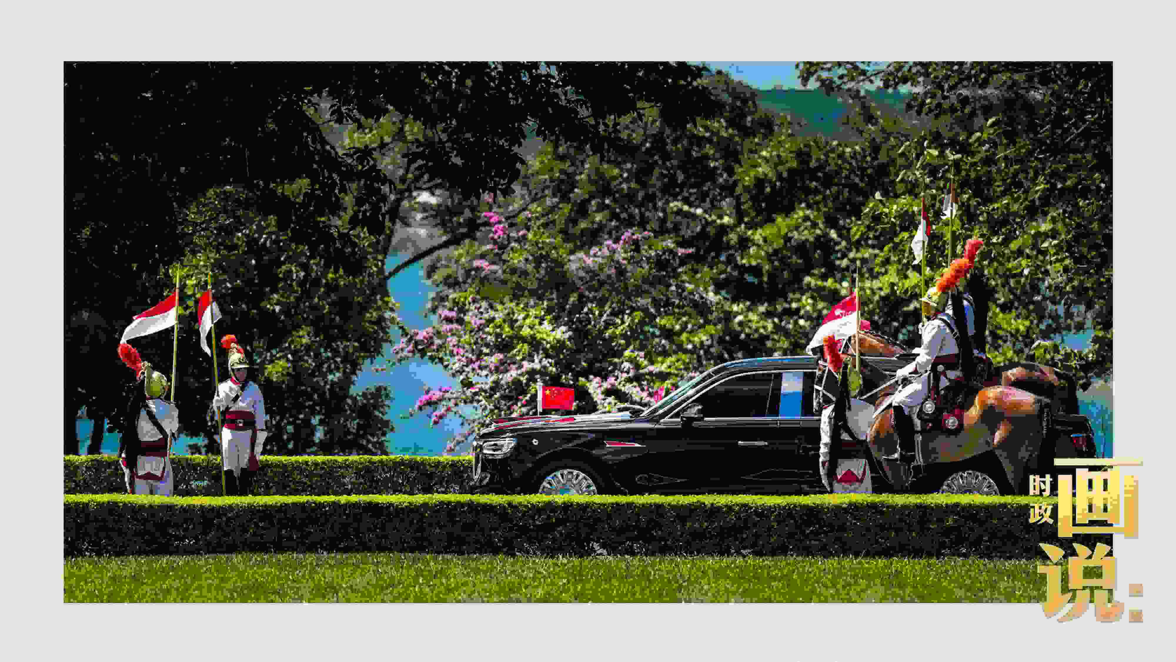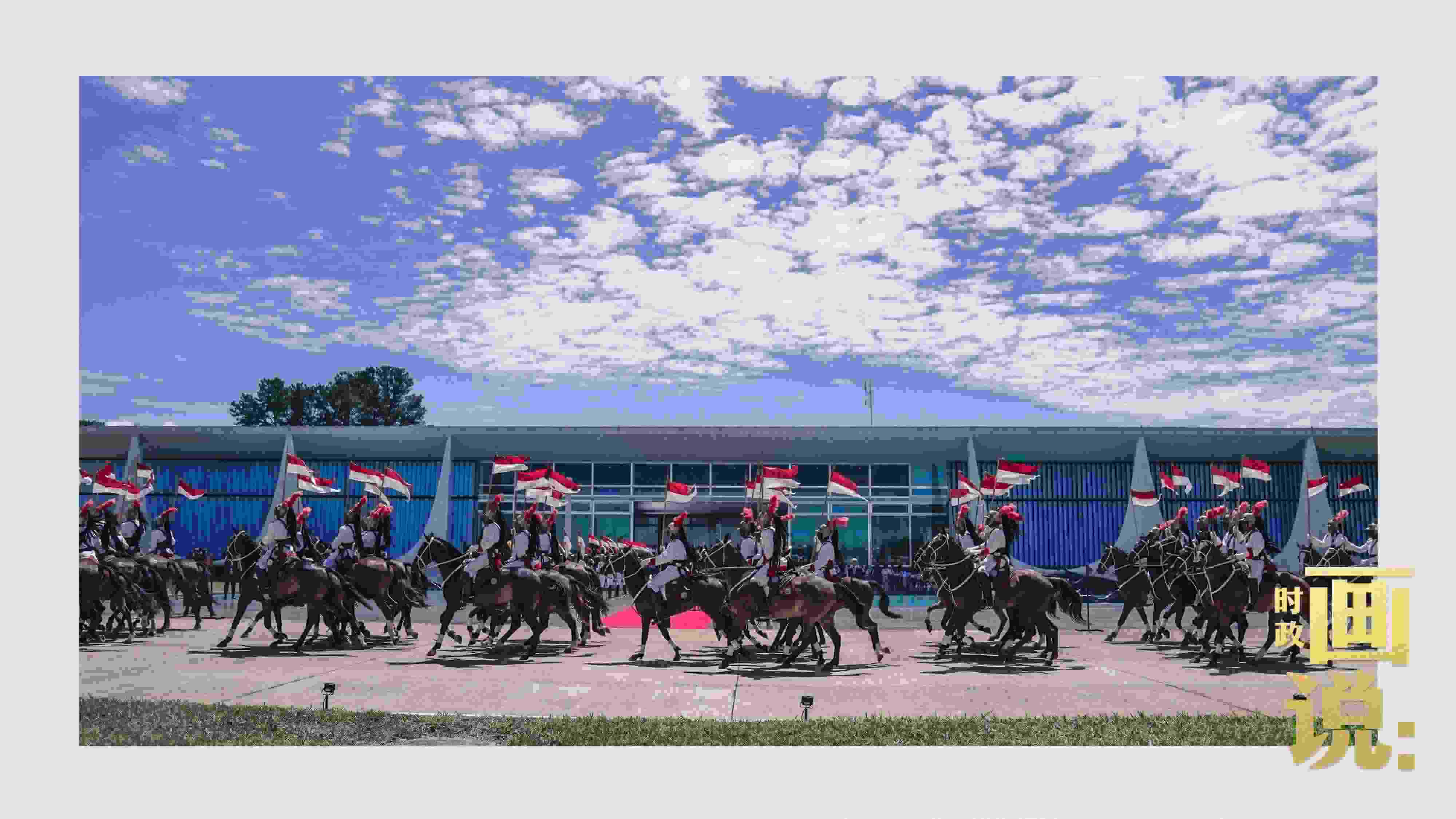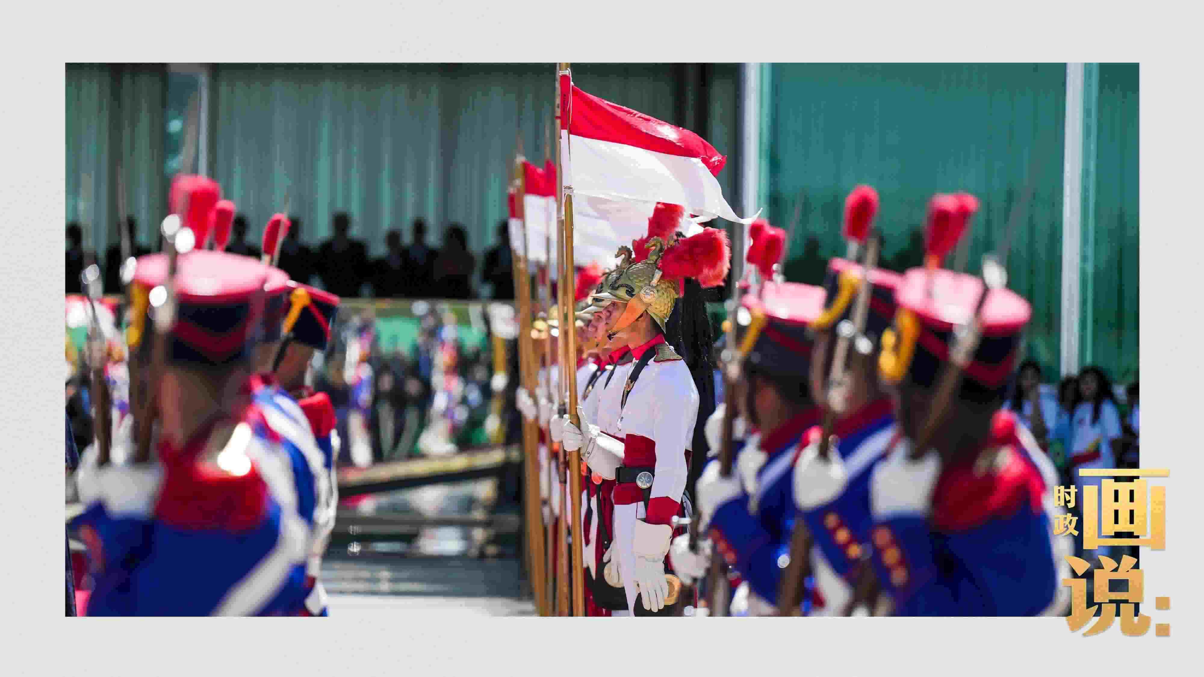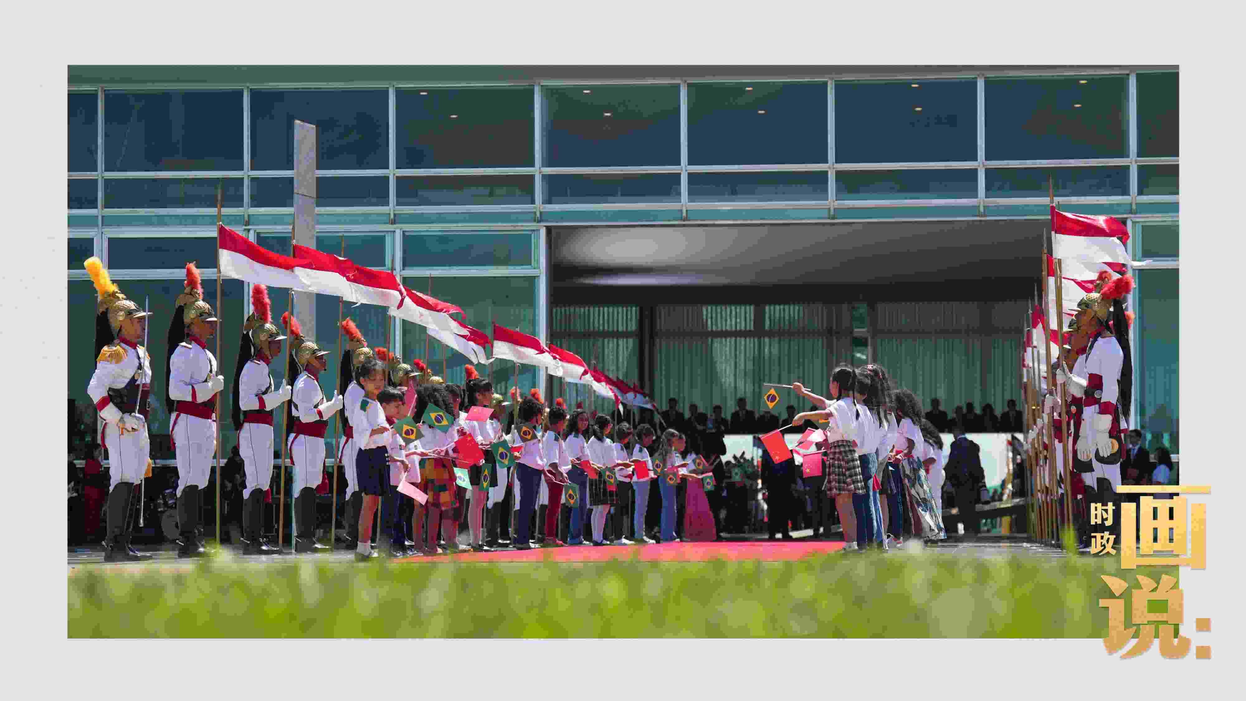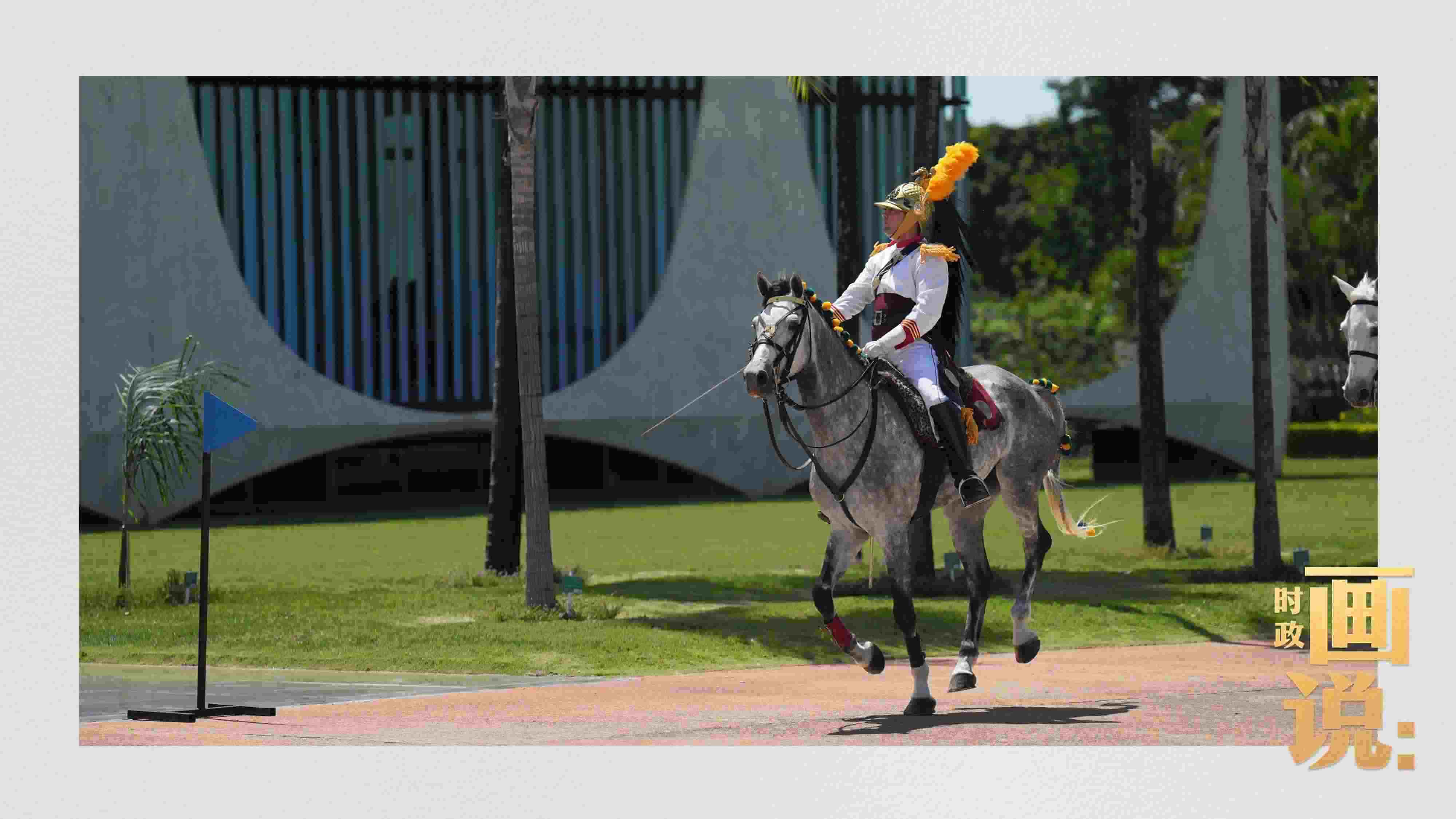騎兵護(hù)衛(wèi)習(xí)近平主席專(zhuān)車(chē)抵達(dá)儀式現(xiàn)場(chǎng),巴西藝術(shù)家用中文深情唱響中國(guó)經(jīng)典民歌《我的祖國(guó)》,現(xiàn)場(chǎng)氣氛隆重?zé)崃摇?/p>