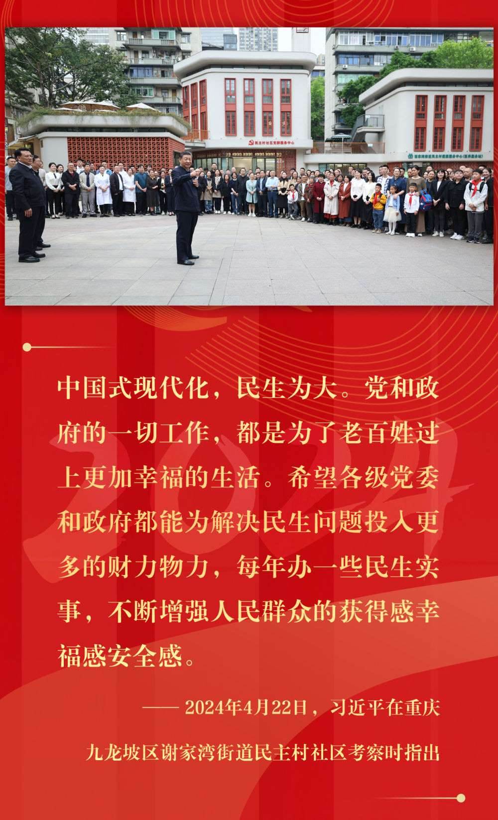 悠悠民生事,枝葉總關情。2024年,總書記考察步履不停,時刻記掛群眾冷暖:災區(qū)災后重建工作、老舊小區(qū)改造、解決“急難愁盼”、服務“一老一小”……人民至上的理念和行動,溫暖著百姓的心。