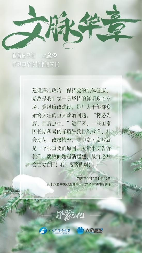 中華優(yōu)秀傳統(tǒng)文化蘊(yùn)含著豐富的廉潔文化,習(xí)近平總書記曾指出:沒有中華優(yōu)秀傳統(tǒng)文化、革命文化、社會(huì)主義先進(jìn)文化的底蘊(yùn)和滋養(yǎng),信仰信念就難以深沉而執(zhí)著??倳洺3R?jīng)據(jù)典,教育引導(dǎo)廣大黨員干部正心修身,涵養(yǎng)文化,守住為政之本。大象新聞分五期為您梳理,我們一起跟著總書記學(xué)習(xí)中華傳統(tǒng)廉潔文化。今天推出第五期。