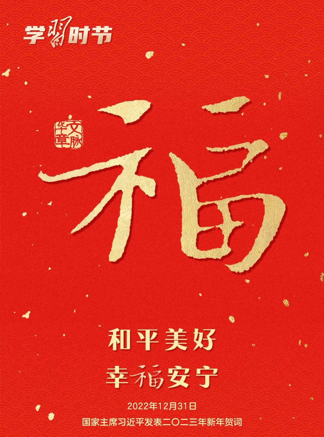 五千多年的中華文明,“福”字貫穿其中。它是中華民族的深層文化基因,也是我們心中最吉祥的字眼。一個“?!弊植粌H寄托了人們對幸福生活的祈愿,也承載著對美好未來的不懈追求。每逢新春,習(xí)近平總書記都會給大家送上真摯的祝福。聲聲送祝福,句句暖人心。值此乙巳蛇年春節(jié),這份來自總書記的新春祝福,讓我們一起聆聽。