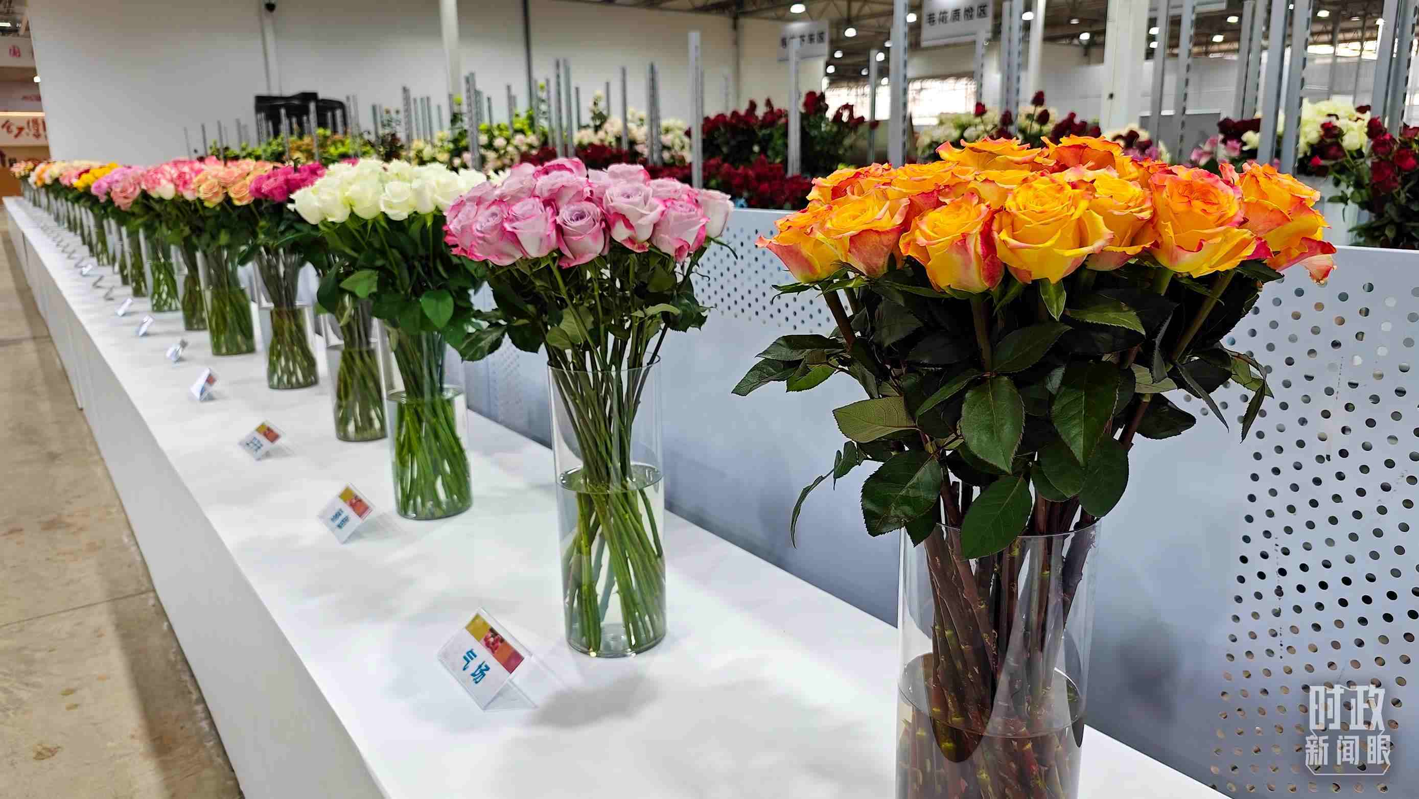 △展廳里展示的鮮花品種。(總臺央視記者趙東辰拍攝)