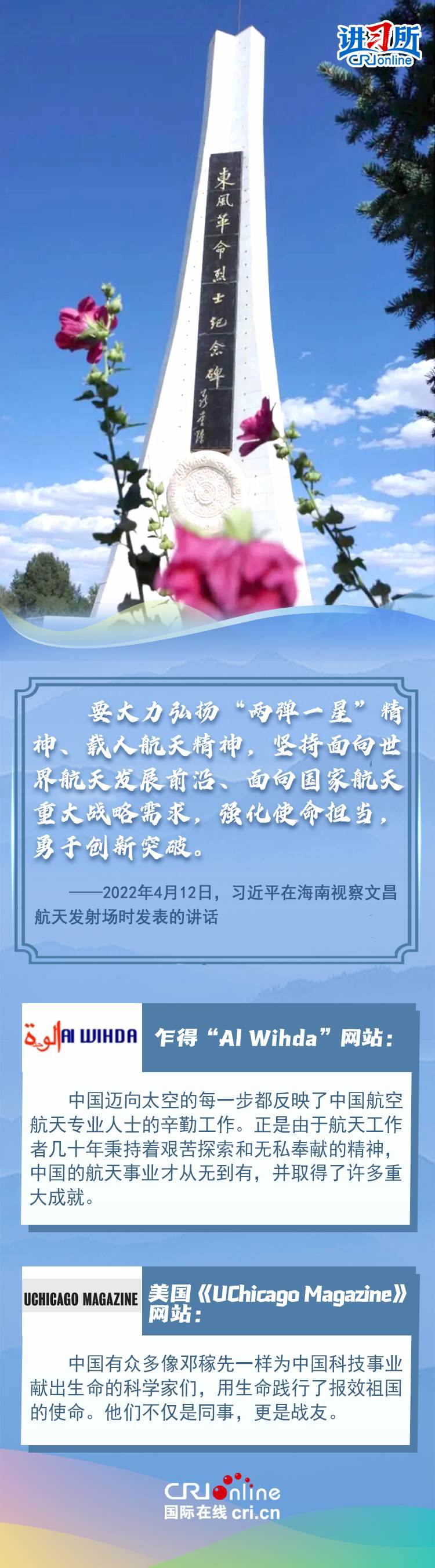 新時代以來,從設(shè)立烈士紀(jì)念日到出臺英雄烈士保護(hù)法,再到加強(qiáng)烈士紀(jì)念設(shè)施保護(hù),中國崇尚英雄、學(xué)習(xí)英雄的社會風(fēng)尚贏得國際社會贊譽(yù)。在國際人士眼中,中國多年來飛躍式的進(jìn)步和發(fā)展,離不開人們對先輩意志的繼承與實(shí)踐。