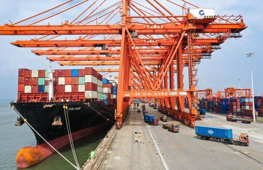 △廣西欽州港是北部灣港的組成部分,也是中國西南地區(qū)通往東盟的重要出海口。