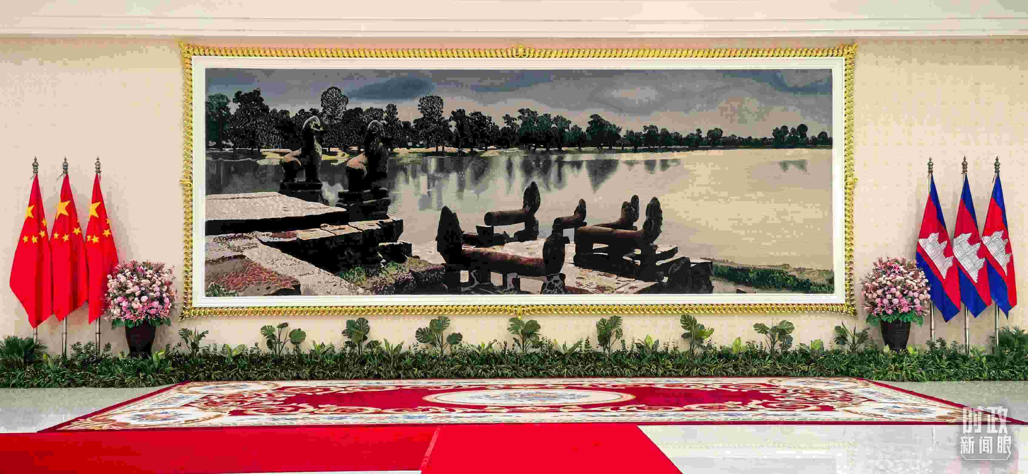 △習(xí)主席會(huì)見洪森前的合影現(xiàn)場(chǎng)。(總臺(tái)央視記者范凱拍攝)