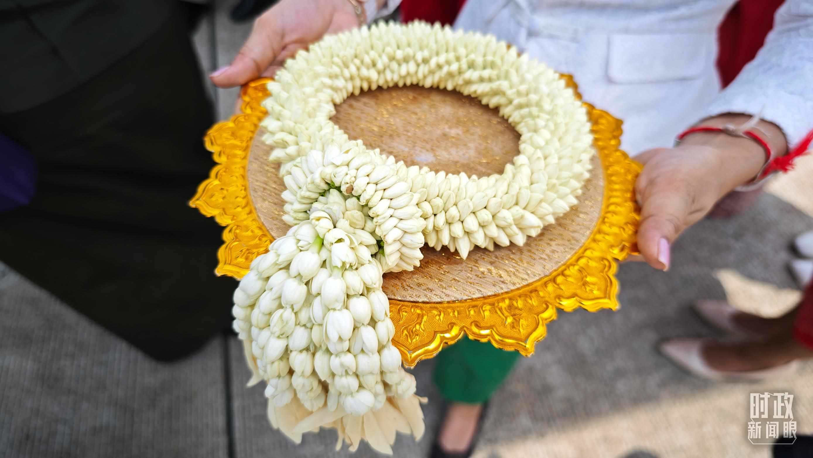 △柬埔寨王室珍娜公主向習(xí)主席獻(xiàn)上的茉莉花手環(huán)。(總臺(tái)央廣記者潘毅拍攝)