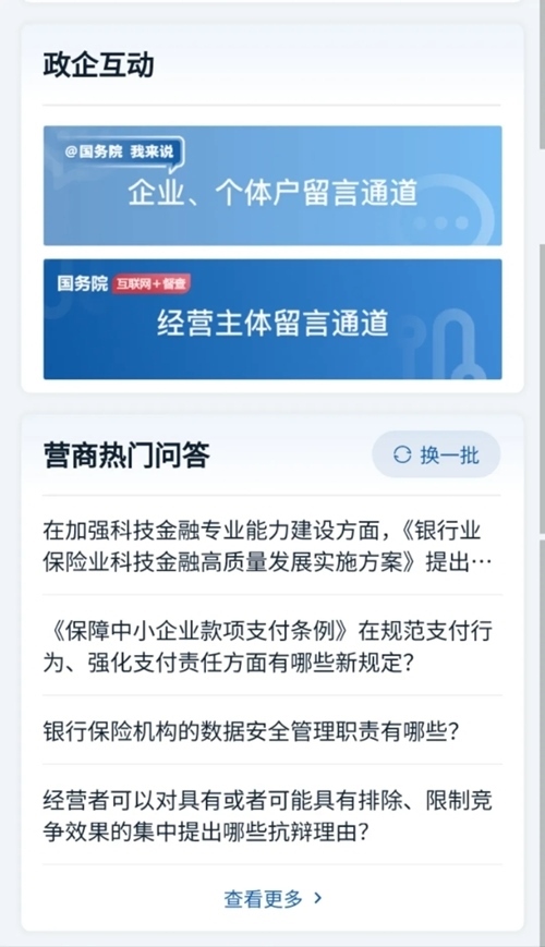 還有“政企互動(dòng)”和“營(yíng)商熱門問答”,