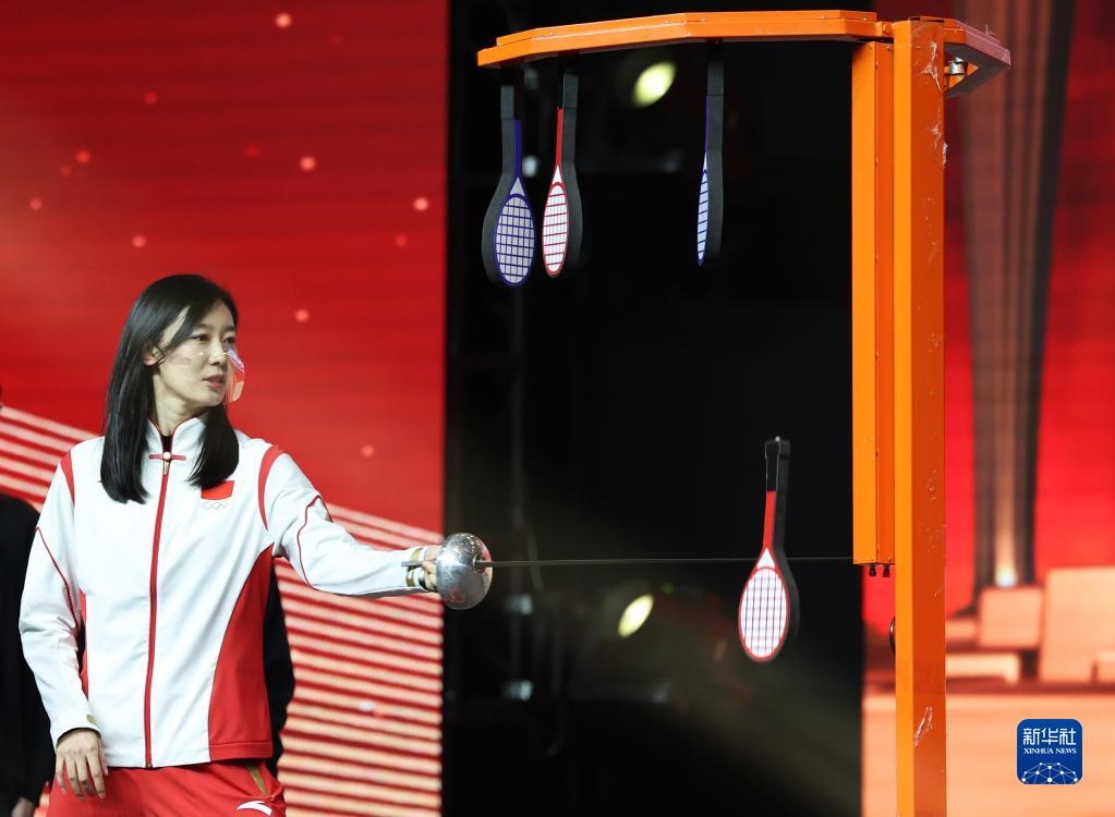 12月20日,內(nèi)地奧運(yùn)健兒代表團(tuán)成員孫一文在活動(dòng)中參與游戲。
