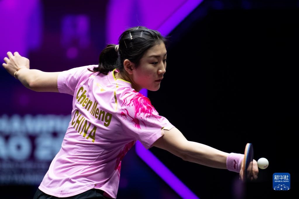 當(dāng)日,在澳門塔石體育館進(jìn)行的2022年WTT澳門冠軍賽女子單打首輪比賽中,中國(guó)選手陳夢(mèng)以3比0戰(zhàn)勝葡萄牙選手付玉,晉級(jí)下一輪。