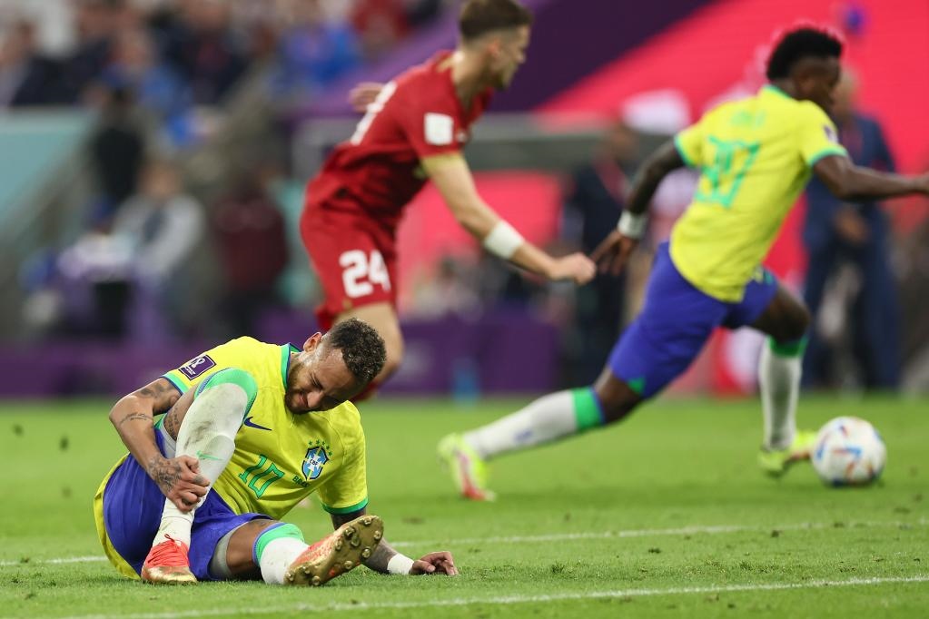 巴西隊當(dāng)天以2:0擊敗塞爾維亞隊,內(nèi)馬爾在比賽尾聲階段受傷后被換下,坐在替補(bǔ)席上的他以球衣掩面,在隊友的安慰下神情有些失望。