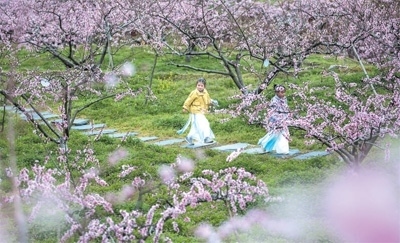 不過,肖田鄉(xiāng)最出彩的還不是朗際古色,而是從小吟村生發(fā)出來的桃紅色。盡管此刻,小吟村東溪村小組的四百畝黃桃基地,樹上掛著的還只是星星點(diǎn)點(diǎn)的花苞,但盤春梅知道,不多時日,漫山遍野便會開出屬于桃紅的磅礴氣勢。