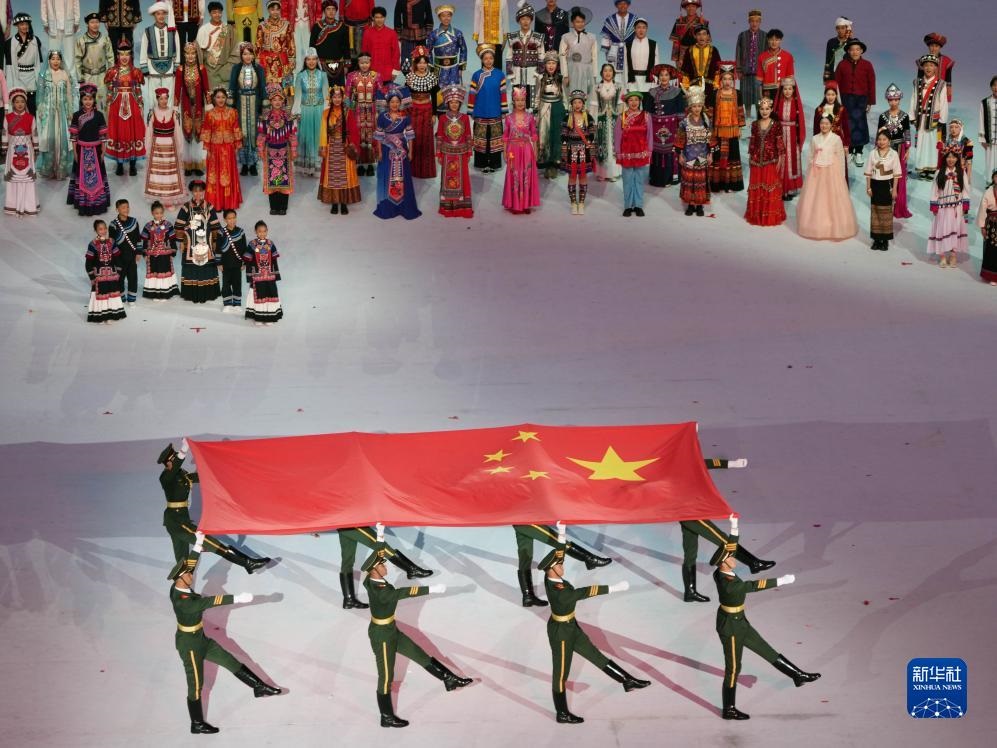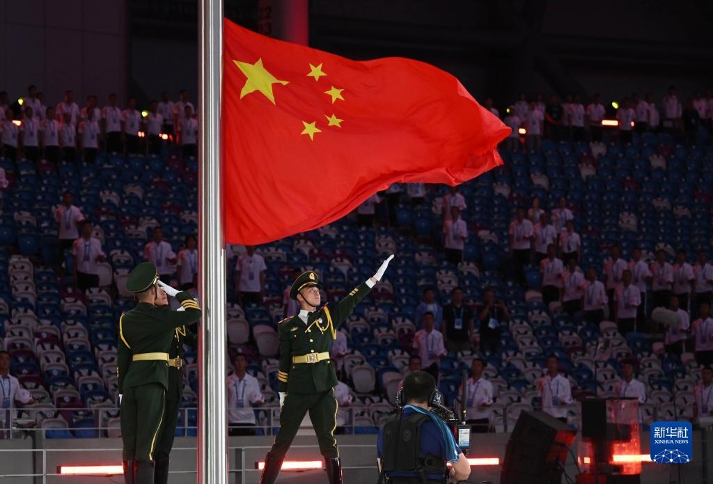 7月28日,中華人民共和國國旗入場。