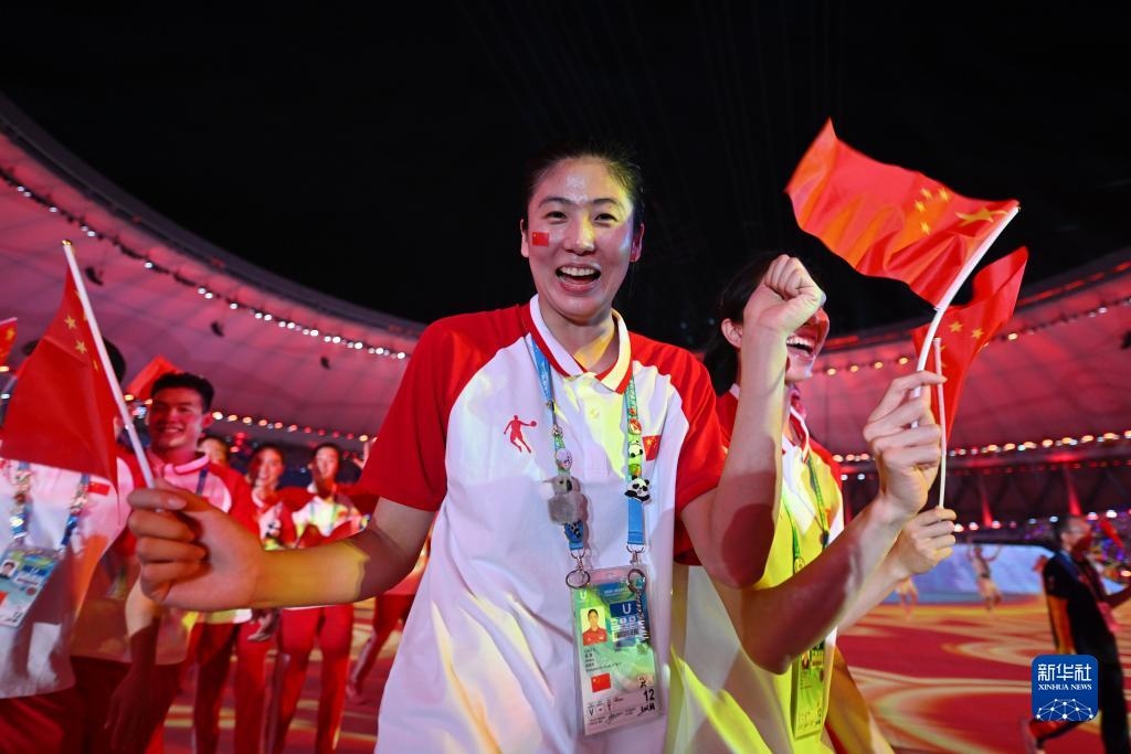 7月28日,中國大學(xué)生體育代表團(tuán)在開幕式上入場。