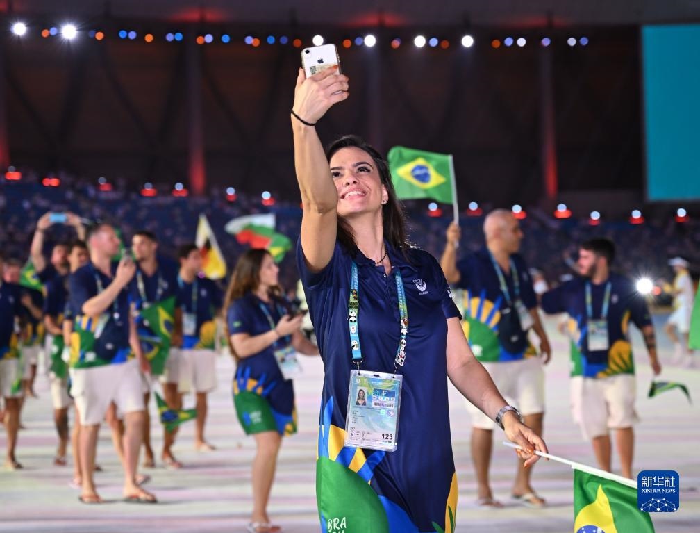 7月28日,巴西大學(xué)生體育代表團(tuán)在開幕式上入場。