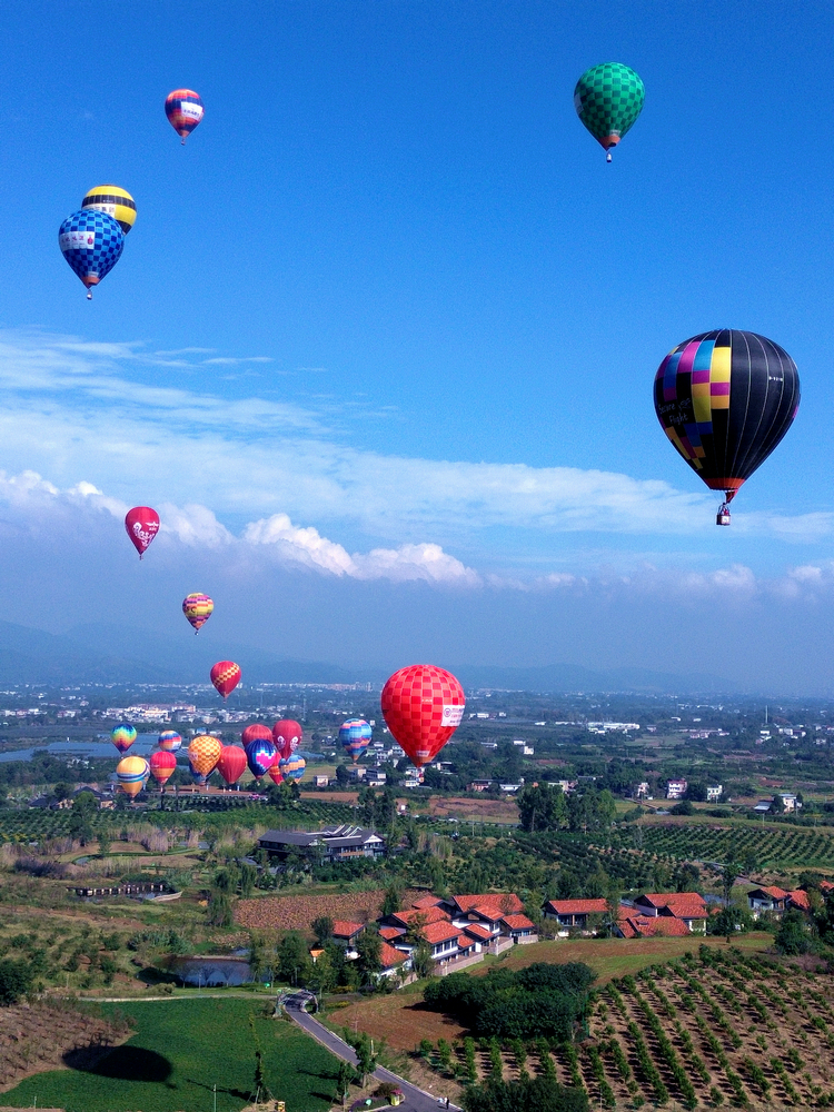 隨著開幕儀式的推進,30支熱氣球依次完成點火、充氣,在歡呼聲中緩緩升空。紅黃藍(lán)綠的熱氣球與郁郁蔥蔥的柑橘園、錯落有致的川西民居相映成趣,構(gòu)成一幅絕美畫卷。據(jù)了解,此次全國熱氣球精英賽(四川金堂站)作為活動核心賽事,將在10月15日-19日期間開展游蕩華爾茲、定點投靶、肘形飛行等10余項專業(yè)競技項目,最讓人期待的是本次賽事將熱氣球飛躍龍泉山作為了長距離飛行的競賽科目,這將是熱氣球首次飛越龍泉山。屆時,參賽選手在比賽的同時還可以在空中觀賞龍泉山脈、千里沱江、絕美古剎等景觀。