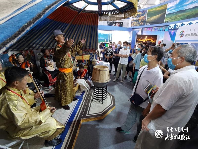 9月6日,在2020年中國國際服務貿易交易會上,來自錫林郭勒盟烏蘭牧騎的演員正在為觀眾演唱蒙古族民歌。此次服貿會,內蒙古展區(qū)以“祖國正北方亮麗內蒙古”為主題,通過宣傳推介內蒙古豐富的文化旅游資源和線路,增進了首都群眾對內蒙古的了解,促進了我區(qū)文化和旅游業(yè)穩(wěn)步發(fā)展。內蒙古日報社融媒體記者馬建荃