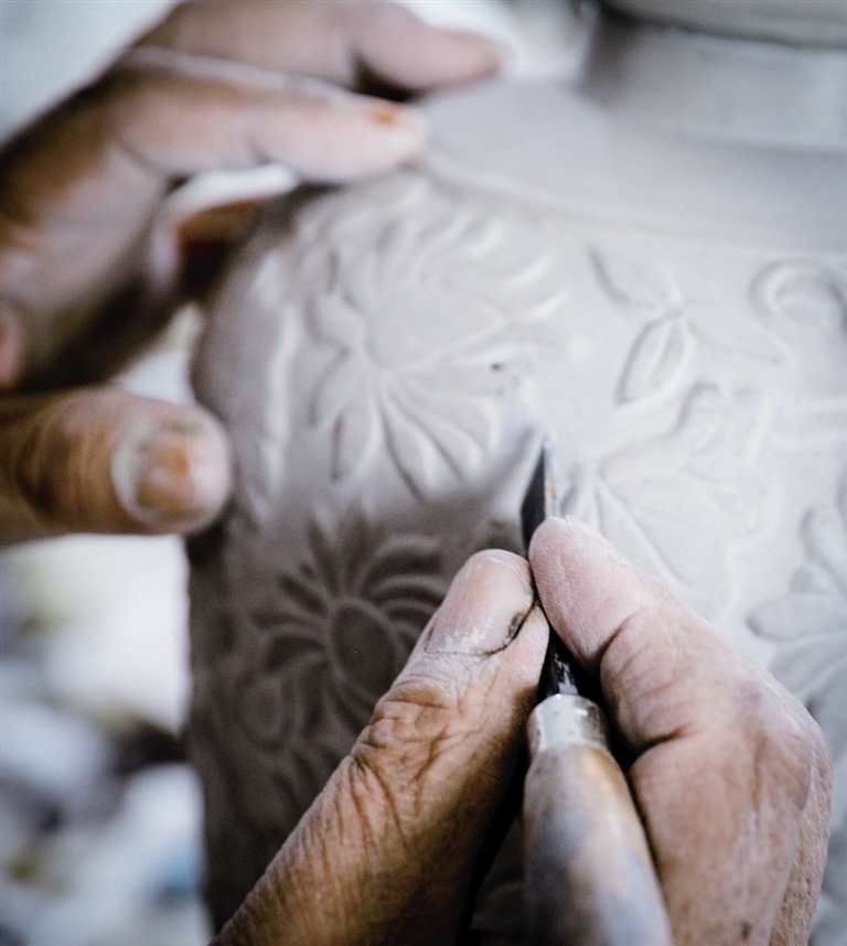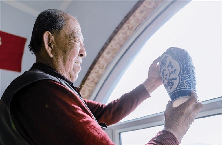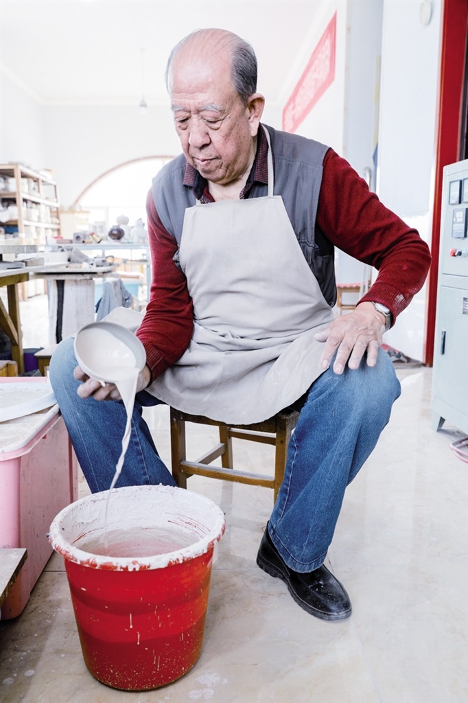 隨后,他走進(jìn)“饅頭窯”旁邊的一口窯洞,這是當(dāng)時(shí)張家的一間手工作坊,揉泥、拉坯、上釉等一系列制作陶瓷的工序都是在這里完成?!拔揖统錾谶@個(gè)村子,已經(jīng)是張家瓷藝的第九代傳人了。作為中國(guó)磁州窯譜系,清水河黑礬溝瓷藝生產(chǎn)歷史至少已有800年?!标P(guān)于這項(xiàng)非遺的歷史故事,張選老人向記者娓娓道來(lái):大約400年前,他們張家走西口從山西來(lái)到清水河謀生,當(dāng)時(shí)清水河黑礬溝有一家姓杜的人家做陶瓷營(yíng)生,張家的先人在杜家打工,大概這樣打工做了三輩人吧,杜家忽然不做了,搬離了黑礬溝,他們張家便把杜家的產(chǎn)業(yè)買(mǎi)了下來(lái)繼續(xù)做。“那個(gè)時(shí)候黑礬溝生產(chǎn)的瓷器都與人們生活息息相關(guān),比如腌菜缸、水甕、碗盤(pán)等,一個(gè)家庭手工作坊一天能生產(chǎn)500個(gè)碗呢,生意很好,人們靠做這個(gè)營(yíng)生也過(guò)上了不錯(cuò)的生活?!睆堖x回憶著清水河瓷藝鼎盛時(shí)期的場(chǎng)景。上個(gè)世紀(jì)70年代,由于交通、技術(shù)等原因,黑礬溝燃燒了幾百年的窯火熄滅,傳統(tǒng)“饅頭窯”被正式廢棄,轉(zhuǎn)移到窯溝鄉(xiāng)后手工作坊變成了機(jī)械化生產(chǎn),這也讓清水河的陶瓷名聲大噪。當(dāng)時(shí),在窯溝鄉(xiāng)一帶,從事陶瓷生產(chǎn)的有近萬(wàn)人,陶瓷業(yè)成為清水河支柱產(chǎn)業(yè)。