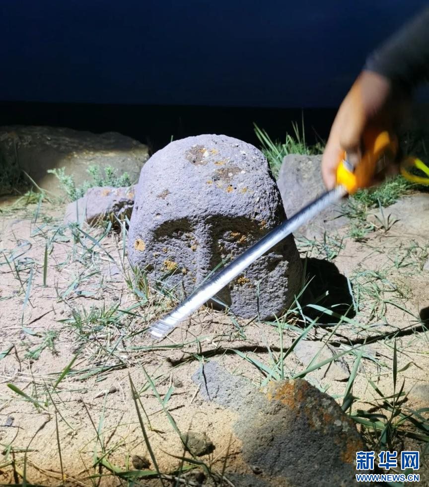 田野考察人員發(fā)現(xiàn)石人像。新華網(wǎng) 發(fā)