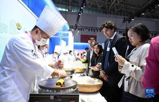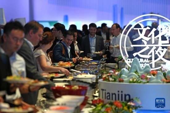6月27日,與會嘉賓在第十四屆夏季達沃斯論壇文化之夜現(xiàn)場了解天津特色美食。