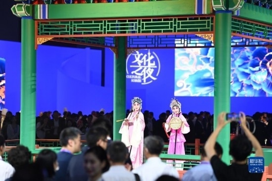 當晚,第十四屆夏季達沃斯論壇文化之夜在天津梅江會展中心舉行。與會嘉賓伴隨著文藝演出,品嘗天津特色美食,體驗中國傳統(tǒng)文化。新華社記者 趙子碩 攝