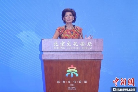 9月15日,法國(guó)漢學(xué)家、作家柯思婷·佳玥在2023北京文化論壇“文明互鑒:相互尊重與合作發(fā)展”平行論壇上發(fā)表演講。 中新社記者 易海菲 攝