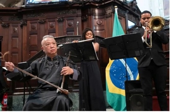 三個月的時間很快過去,童生垣的“洋徒弟”們已經(jīng)能夠熟練演奏中國民樂經(jīng)典曲目,他們也積極嘗試將民樂音色與管弦樂器和本土鼓點節(jié)奏相結(jié)合,奏響中巴音樂和鳴鏗鏘、文明交流互鑒的新樂章。據(jù)童老師介紹,巴西青年很喜歡京劇的鑼鼓經(jīng),二胡的含蓄靜美遇上巴西打擊樂的歡快跳躍,可謂各美其美,美美與共。科帕卡巴納要塞管弦樂團(tuán)成員主要來自里約低收入家庭,得益于中海油巴西公司在巴《文化激勵法》框架下的資助而有機會接受藝術(shù)教育并改變?nèi)松壽E,乘著音樂的翅膀飛向更廣闊的天地。