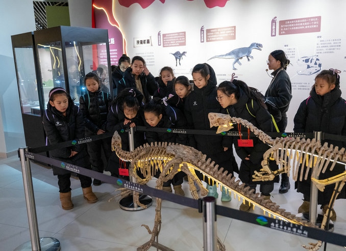 據(jù)介紹,此次展覽包括“巨龍家族”“披堅執(zhí)銳”“‘干飯’能手”和“稱霸之路”四個部分,集中展示了內(nèi)蒙古地區(qū)發(fā)現(xiàn)的各類恐龍共52種。