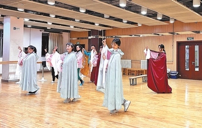 楊楠楠(右二)在學習昆曲表演。