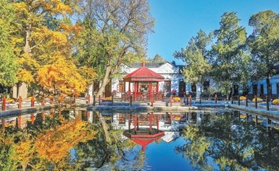 雙清別墅內(nèi)有一座六角紅亭,當年毛澤東在工作之余,會到亭子里坐坐。1949年4月的一天,毛澤東正在六角紅亭閱讀刊載“南京解放”消息的報紙。在場的攝影師徐肖冰打開照相機,按下快門,一張具有歷史意義的照片誕生了。如今,這座亭子里的藤桌、瓷鼓,都根據(jù)衛(wèi)士長李銀橋的回憶進行了復(fù)原。