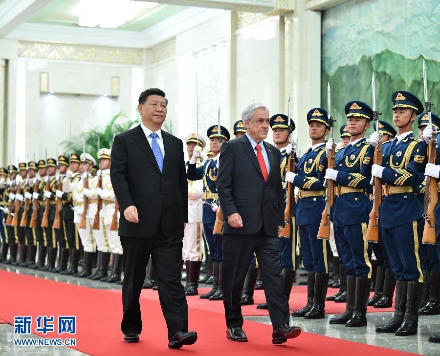 國家主席習(xí)近平24日在人民大會堂同智利總統(tǒng)皮涅拉舉行會談。