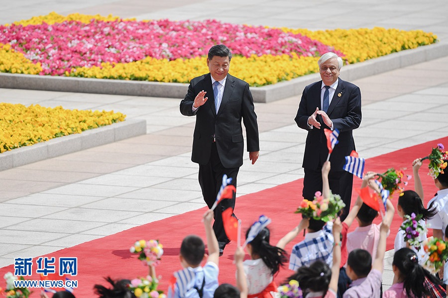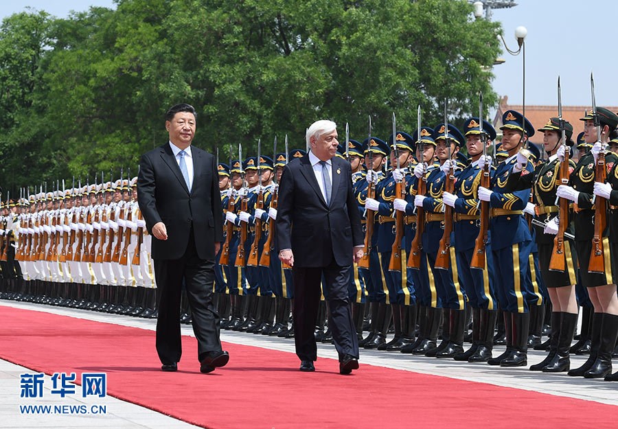 5月14日,國家主席習(xí)近平在北京人民大會(huì)堂同希臘總統(tǒng)帕夫洛普洛斯舉行會(huì)談。這是會(huì)談前,習(xí)近平在人民大會(huì)堂東門外廣場為帕夫洛普洛斯舉行歡迎儀式。 新華社記者 燕雁 攝