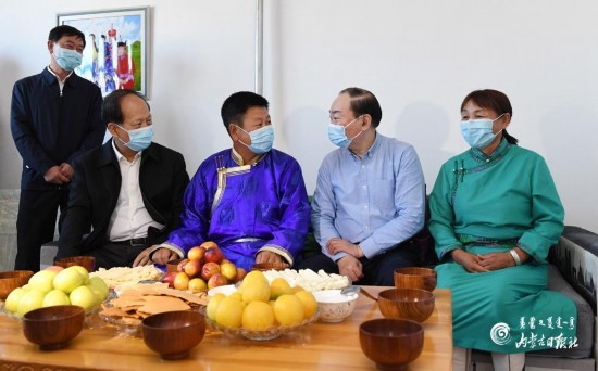 8月29日,中共中央政治局委員、中宣部部長(zhǎng)黃坤明在內(nèi)蒙古自治區(qū)黨委書(shū)記、人大常委會(huì)主任石泰峰陪同下,深入興安盟科右中旗巴彥茫哈蘇木哈圖布其嘎查,走進(jìn)牧戶(hù)家中了解生產(chǎn)生活和脫貧情況。內(nèi)蒙古日?qǐng)?bào)記者袁永紅攝