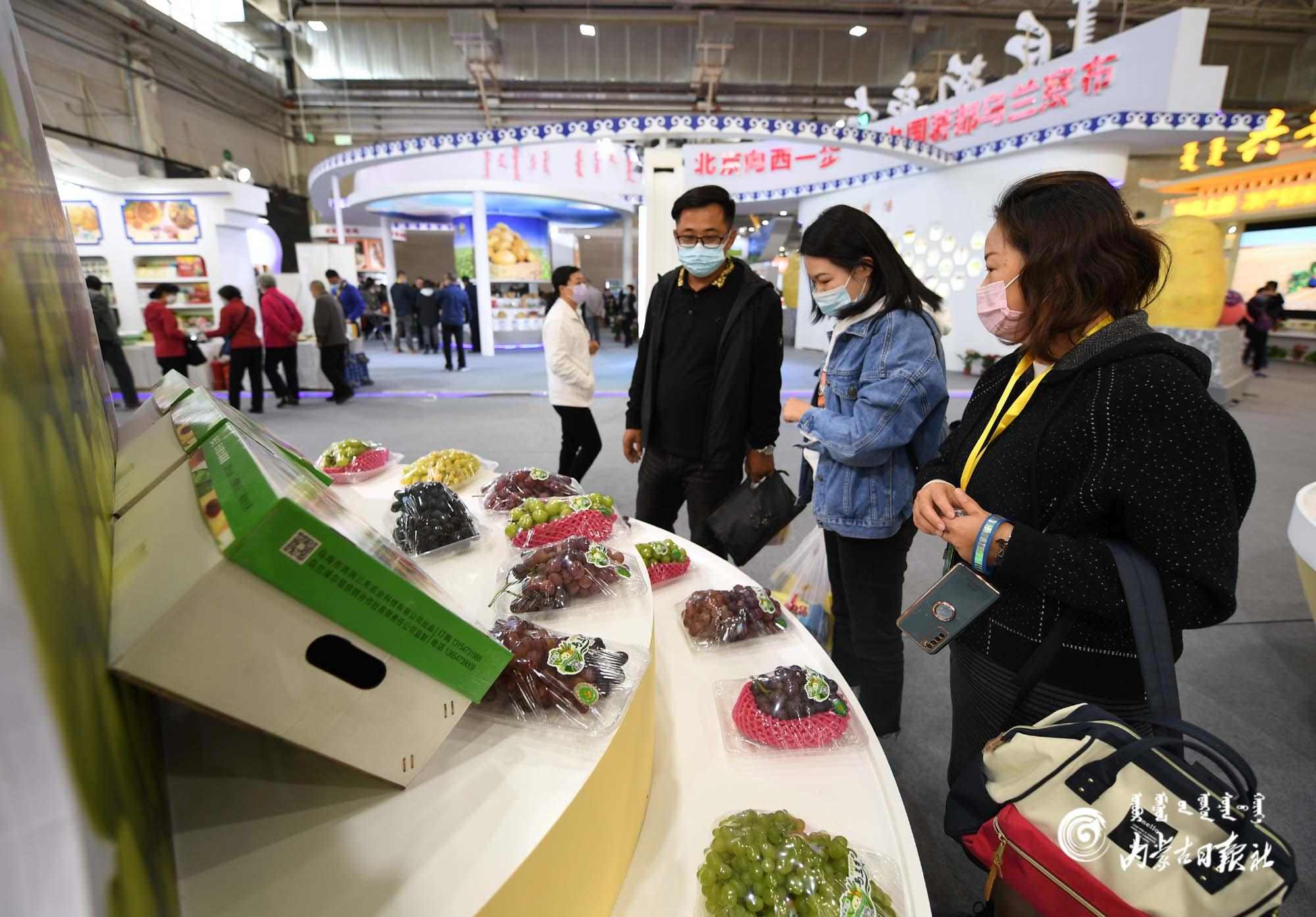 一走進(jìn)烏海展廳,一陣濃郁的葡萄香味撲面而來,色澤艷麗、珠圓玉潤的品相更是令人垂涎欲滴,路過的市民紛紛駐足詢價。