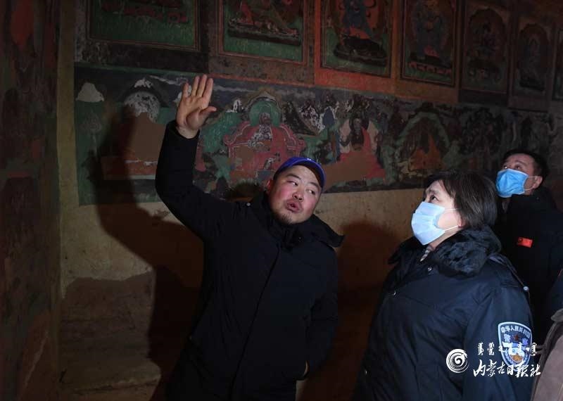 布小林沿著山體走進(jìn)石窟,察看壁畫現(xiàn)存狀況,了解石窟保護(hù)修復(fù)、學(xué)術(shù)研究以及遺址保護(hù)規(guī)劃和方案制定情況,要求對阿爾寨石窟實(shí)施整體保護(hù),做好考古發(fā)掘研究,挖掘其文化內(nèi)涵,發(fā)揮石窟的歷史文化價值。