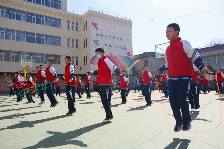 北疆新聞網(wǎng)、北疆新聞客戶端消息(記者 李艷紅)3月22日,呼和浩特市第四中學(xué)操場(chǎng)上熱鬧非凡,6年級(jí)4班的同學(xué)們正在進(jìn)行跳繩練習(xí),環(huán)繞操場(chǎng)的教學(xué)樓內(nèi)的,各年級(jí)學(xué)生正在體育教室中開(kāi)展武術(shù)課、形體課、乒乓球課等特色體育課程。