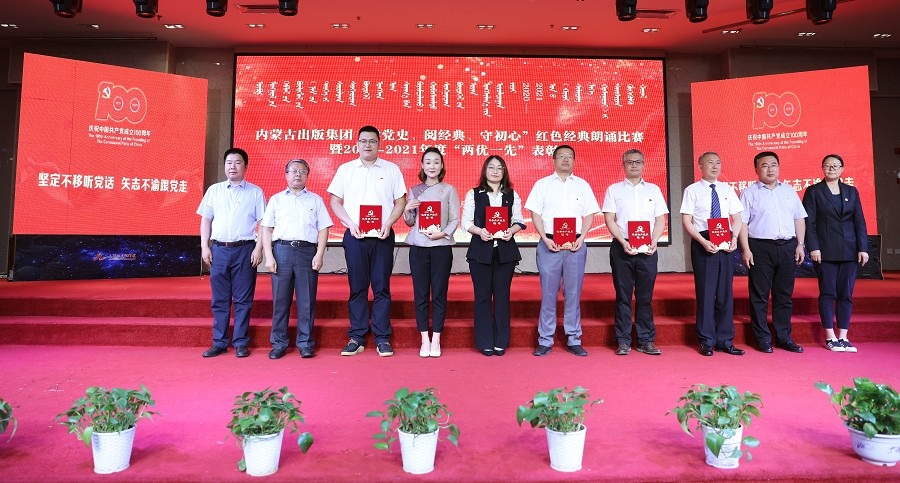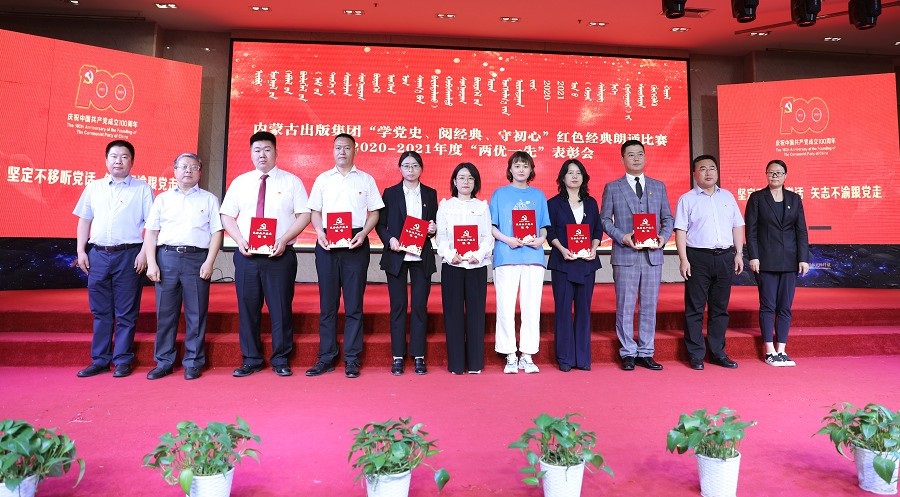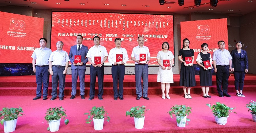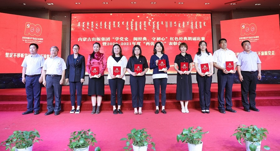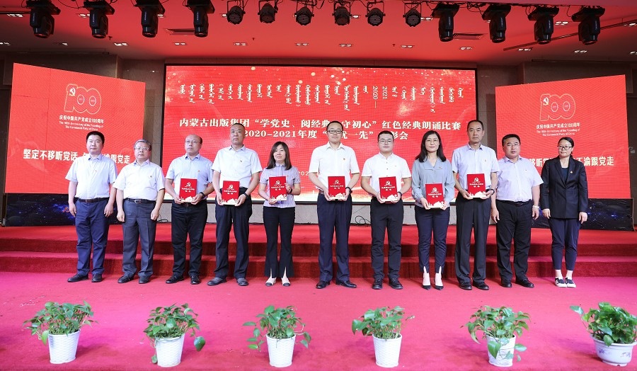 6月26日,內(nèi)蒙古出版集團(tuán)在維力斯大酒店舉辦“學(xué)黨史、閱經(jīng)典、守初心”紅色經(jīng)典朗誦比賽暨2020—2021年度“兩優(yōu)一先”表彰大會(huì)。內(nèi)蒙古出版集團(tuán)黨委書(shū)記、董事長(zhǎng)雙龍,黨委副書(shū)記王富,黨委委員、副總經(jīng)理扎拉根,副總經(jīng)理王曉玲,總編輯助理黃滔,總經(jīng)理助理白玉峰等領(lǐng)導(dǎo)出席會(huì)議。