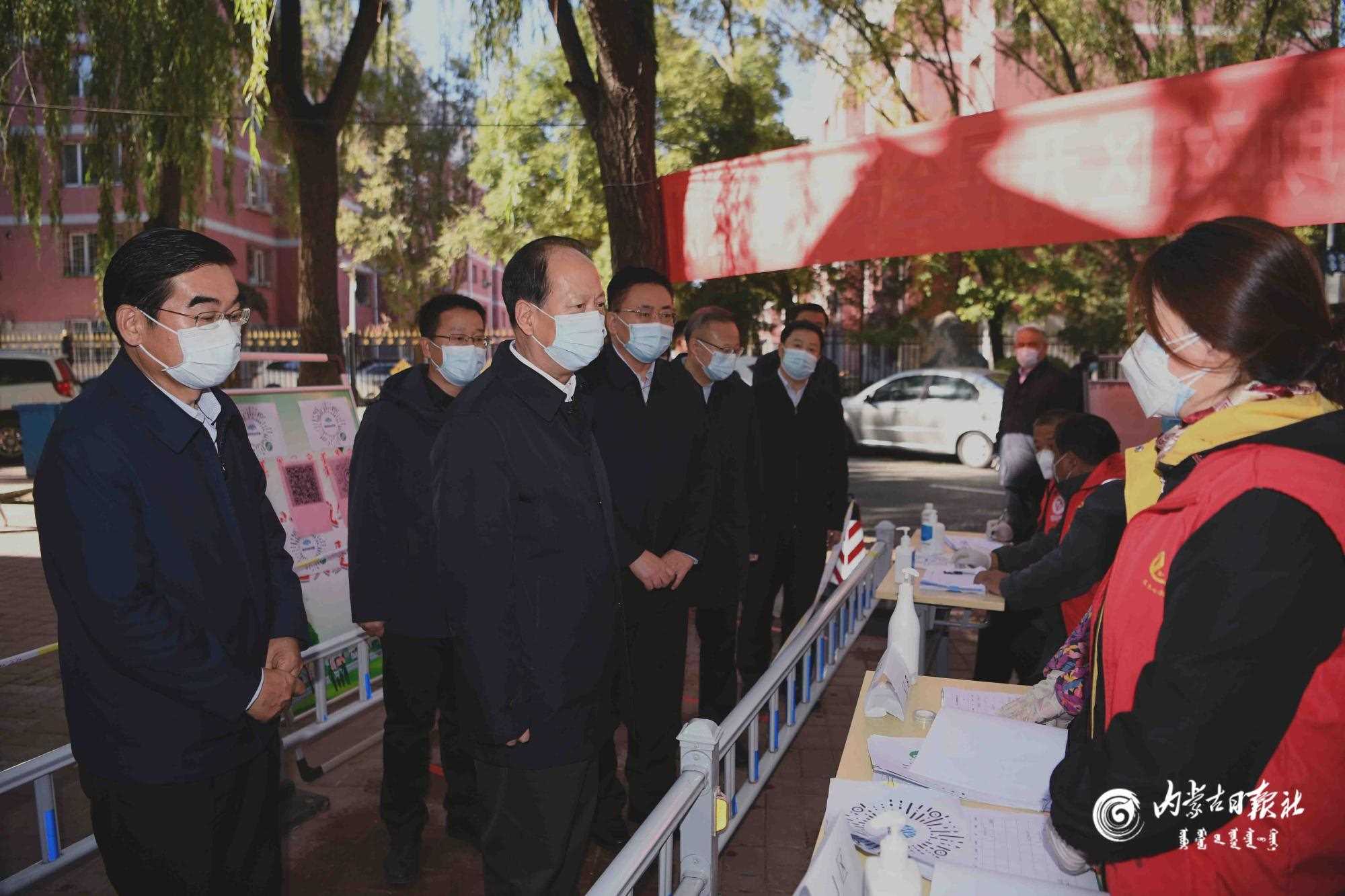 10月26日,自治區(qū)黨委書記、人大常委會主任石泰峰在學(xué)府花園小區(qū),檢查入口健康碼查驗(yàn)、體溫檢測、值班值守等情況,并來到核酸檢測采樣點(diǎn),仔細(xì)察看采樣登記流程。內(nèi)蒙古日報(bào)社融媒體記者 袁永紅 攝
