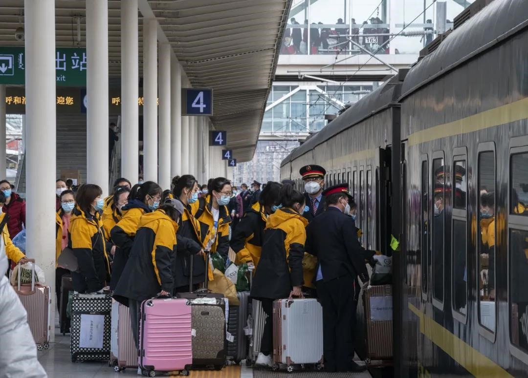為此,呼和浩特站開辟了專門的候車區(qū)域、綠色通道,指派專人負責醫(yī)務人員乘車和物資搬運。