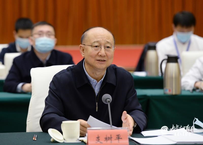 11月13日下午,中央第四督導(dǎo)組組長、全國政協(xié)常委、提案委員會副主任支樹平出席會議并反饋督導(dǎo)意見。內(nèi)蒙古日報社融媒體記者 袁永紅 攝