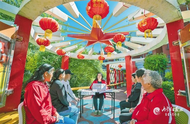 呼和浩特市玉泉區(qū)清泉街社區(qū)組織黨員干部群眾關(guān)注兩會(huì)熱點(diǎn)。內(nèi)蒙古日報(bào)社融媒體記者 王磊攝
